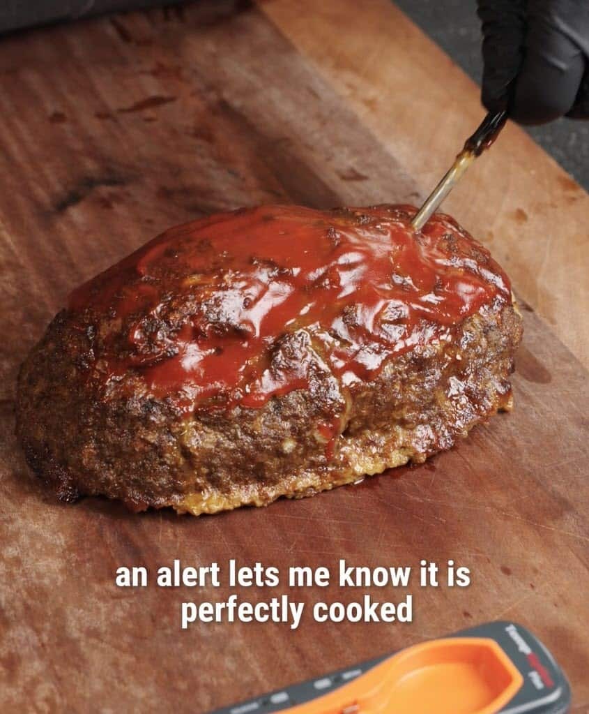 Insert the ThermoPro TP970 TempSpike Plus Bluetooth Meat Thermometer ’s wireless probe into the center of the meatloaf and monitor the internal temperature through your phone. Once it hits 160°F, it’s done.