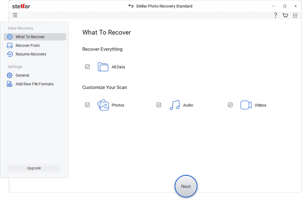 - Not only photos, the Stellar Photo Recovery software also supports recovery of deleted audio and video files of various file formats.